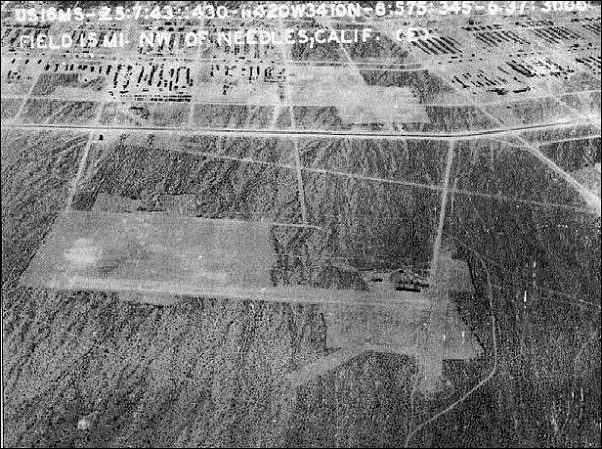 Constructed in winter 1942-1943, Camp Ibis was first occupied by the 4th Armored Division. After the departure of the 4th in June 1943, the camp was occupied by the 9th Armored Division from July to November 1943. The 9th Armored Division was replaced by the 11th Division in winter 1943, which was the last division to occupy the camp (Meller 1946 :41-42). Most of the divisions placed signs indicating their presence at the camps. The 11th Division was no exception, placing a sign over the main road into Camp Ibis. Temporary facilities at Camp Ibis consisted of 28 shower buildings for enlisted men and 14 for officers; 173 latrine buildings; 97 single, 127 double, and 100 triple wooden tent frames; a 50,000-gallon, concrete water reservoir; and a 50,000-gallon, wooden, elevated storage tank. In addition, the camp contained 23 ranges, including ones for moving targets, pistols, rifles, and .50-caliber machine guns. There were also several combat ranges, vehicle combat ranges, and transition courses. A POW camp, perhaps associated with Camp Ibis, was reported to have existed near Searchlight Junction, 1 mile south of Camp Ibis (Bard 1972 :139). Supporting this report are indications that the largest area cleared of ordnance lies immediately west of the Dead Mountains, which are located near Camp Ibis (BLM n.d.). [1: pp: 73]