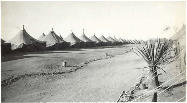 Historic views: The following images show period Camp Ibis scenes and a wartime aerial, not present-day conditions.