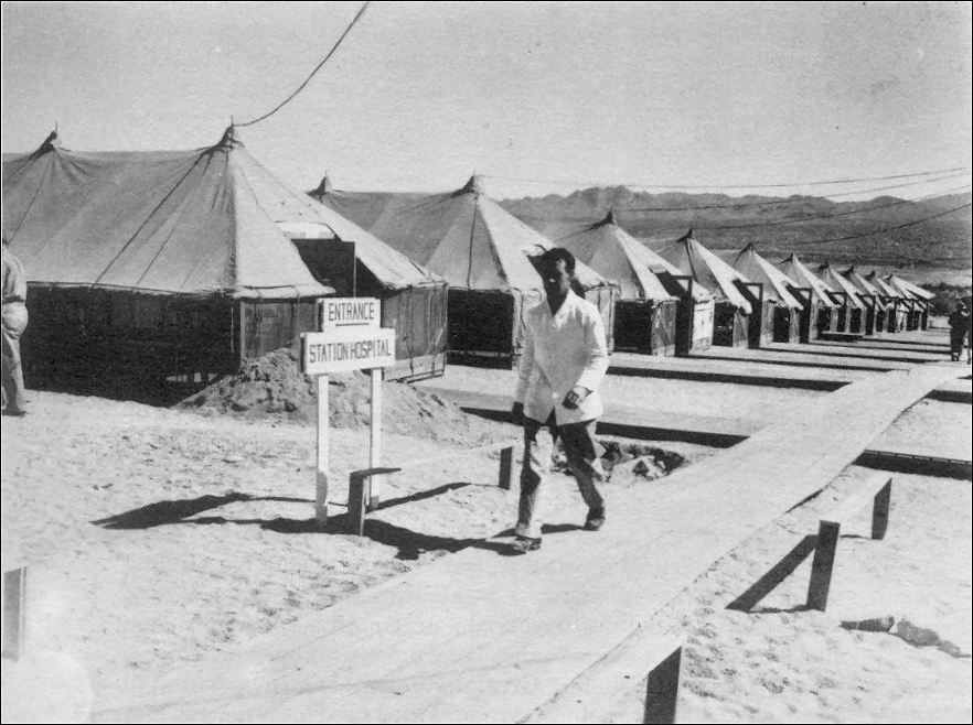 Evidence of other military activity can be found throughout the general area, including 1940s-era refuse near the railroad tracks leading to the Eagle Mountain Mine. There was also a DTC/C-AMA evacuation hospital at Desert Center, although its exact